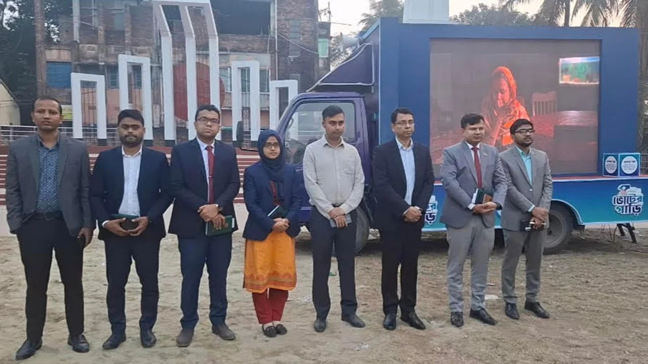 নির্বাচন ও গণভোটের বার্তা নিয়ে জয়পুরহাটে ‘ভোটের গাড়ি’