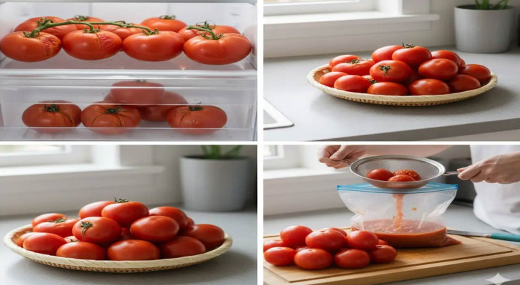 পাকা টমেটো কখনোই ফ্রিজে রাখা উচিত নয়। ঘরের তাপমাত্রায় রাখাই সবচেয়ে ভালো। মোটামুটি ২০ ডিগ্রি সেলসিয়াসের আশপাশের তাপমাত্রায় পাকা টমেটো রাখা হলে তার যৌগগুলো সক্রিয় থাকে এবং স্বাদ ও গুণ ধরে থাকে। এই শীতে রান্নাঘরের ঝুড়িতেই সহজে রাখার ব্যবস্থা করা যায়। কাঁচা টমেটোও ঘরের তাপমাত্রাতেই সংরক্ষণ করুন; ফ্রিজে রাখলে তা দ্রুত নরম হয়ে যায়। সংরক্ষণের আগে টমেটোর বোঁটাগুলো কেটে ফেললে তা দীর্ঘ সময় ভালো থাকে।