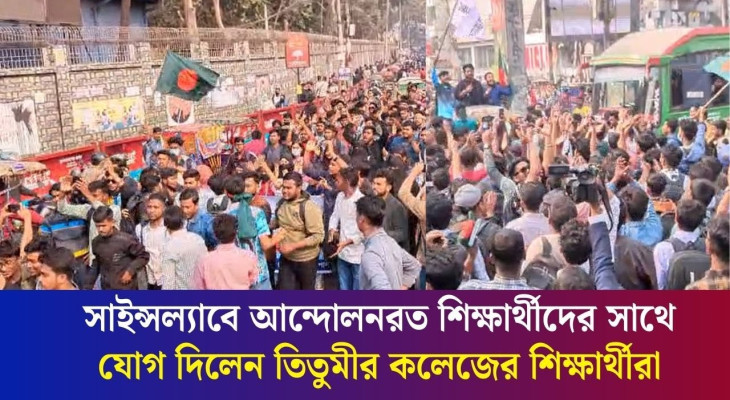সাইন্সল্যাবে আন্দোলনরত শিক্ষার্থীদের সাথে যোগ দিলেন তিতুমীর কলেজের শিক্ষার্থীরা
