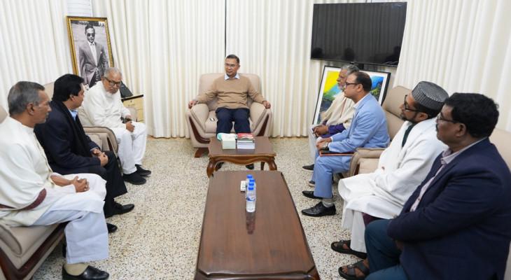 বিএনপির চেয়ারম্যান তারেক রহমানের সঙ্গে বৈঠক করেছেন ১২ দলীয় জোটের নেতারা।