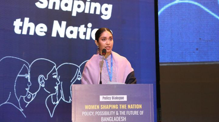 বাংলাদেশের উন্নয়নে নারীদের অংশগ্রহণ নিয়ে জাইমা রহমান বলেন, “জনসংখ্যার অর্ধেক অংশকে একপাশে রেখে বাংলাদেশ দীর্ঘমেয়াদে বেশিদূর এগোতে পারবে না।