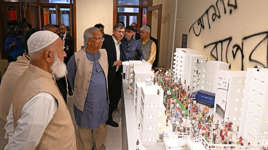 গণভবনে জুলাই গণঅভ্যুত্থান স্মৃতি জাদুঘরের চূড়ান্ত পর্যায়ের কাজের অগ্রগতি পরিদর্শন করেছেন প্রধান উপদেষ্টা ড. মুহাম্মদ ইউনূস।
