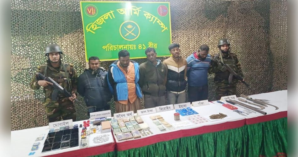সেনাবাহিনীর অভিযানে অস্ত্র, টাকা ও মাদকসহ আটক ৫