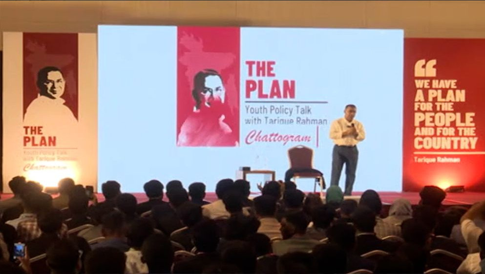 ‘দ্য প্ল্যান: ইয়ুথ পলিসি টক উইথ তারেক রহমান’ শীর্ষক এ সভায় চট্টগ্রাম নগর এবং আশপাশের অর্ধশত কলেজ-বিশ্ববিদ্যালয়ের সাড়ে ৪শ’ শিক্ষার্থী অংশগ্রহণ করেছেন। সংলাপে তারেক রহমান শিক্ষা, কর্মসংস্থান, নারীর ক্ষমতায়ন, কৃষিসহ বিভিন্ন বিষয়ে বিএনপির পলিসি তুলে ধরেন। পাশাপাশি তরুণ-তরুণীদের পরামর্শ শুনছেন এবং তাদের বিভিন্ন প্রশ্নের উত্তর দিচ্ছেন। শিক্ষার্থীদের বিকল্প কর্মসংস্থান এবং ক্ষুদ্র উদ্যোক্তা হিসেবে নিজেদের গড়ে তোলার আহ্বান জানিয়েছেন বিএনপি চেয়ারম্যান।
