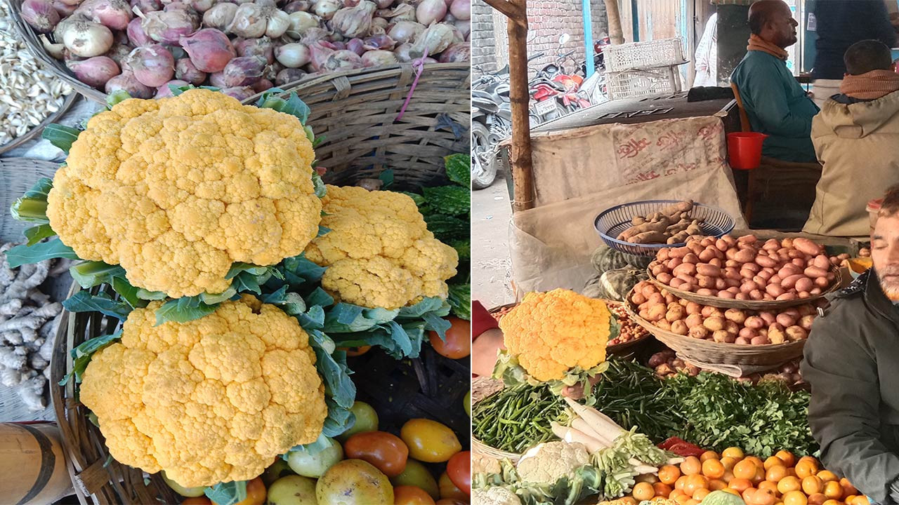 বীরগঞ্জ (দিনাজপুর) প্রতিনিধি: শীতকালীন সবজি হিসেবে সাধারণত সাদা জাতের ফুলকপির আধিপত্য থাকলেও এবার বাজারে প্রচুর পরিমাণে দেখা গেল ব্যতিক্রমী রঙিলা জাতের হলুদ ফুলকপি। দিনাজপুরের বীরগঞ্জ পৌর শহরের দৈনিক বাজারের বিভিন্ন সবজির দোকানে চেনা সাদা সবজির রঙিন রূপ দেখে থমকে দাঁড়াচ্ছেন ক্রেতা ও দর্শনার্থীরা। উপজেলার সাতোর, ভোগনগর, মোহনপুর, পাল্টাপুর ও নিজপাড়া ইউনিয়নের দেবীপুর গ্রামে রঙিন ফুলকপির চাষ শুরু করেছে চাষিরা।