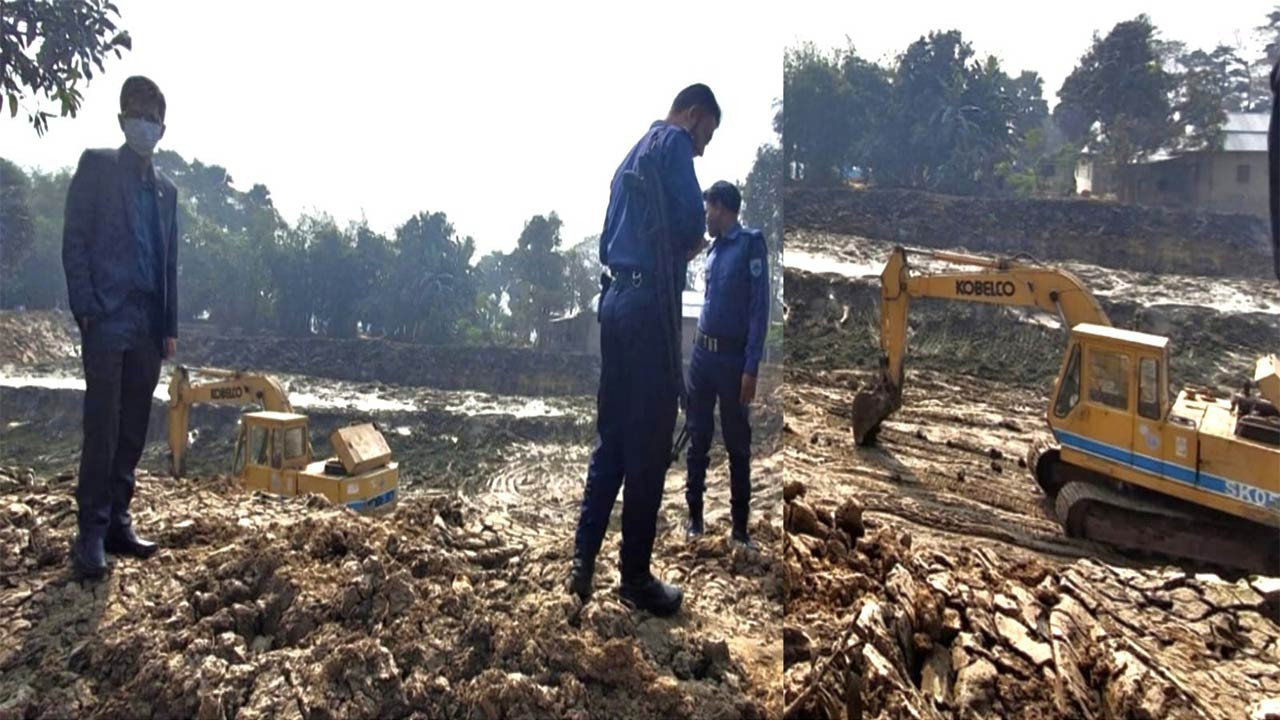 বগুড়ার নন্দীগ্রামে মাটি কাটা ও বিক্রির দায়ে এস্কেভেটরের বিভিন্ন সরঞ্জামদি জব্দ