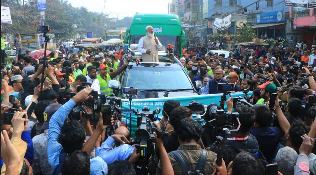 সবুজ বাসে নির্বাচনি প্রচারণা শুরু করলেন জামায়াত আমির