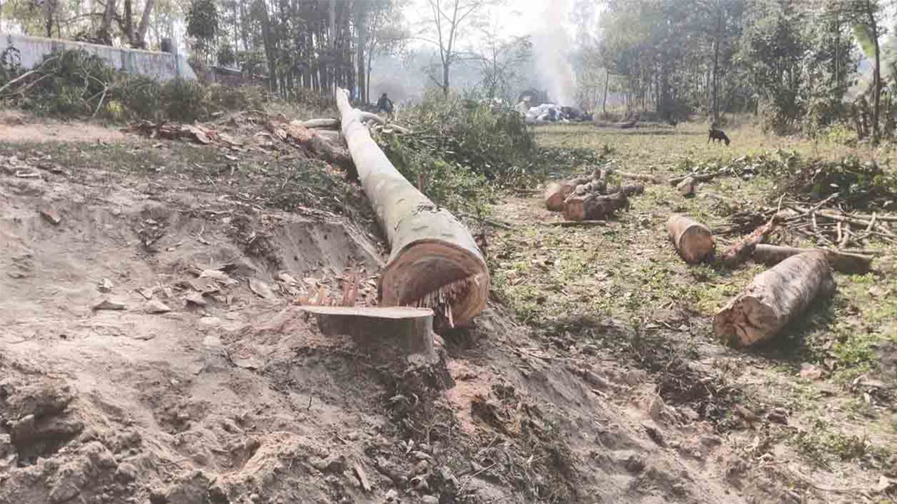 জয়পুরহাটের বালিঘাটায় সরকারি রাস্তার গাছ কেটে বিক্রির অভিযোগ