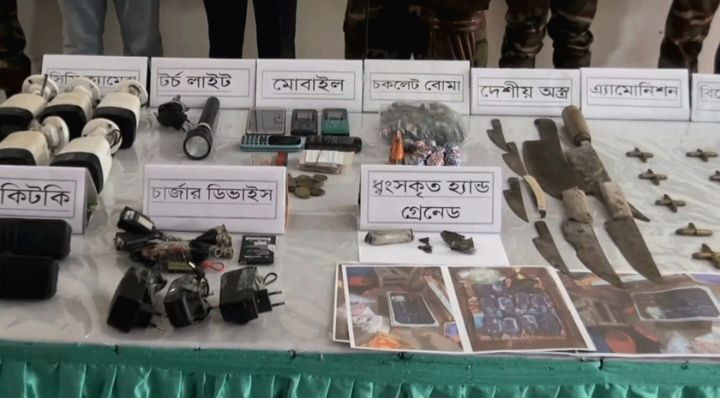আরও পড়ুনঅভিযানের এক পর্যায়ে একটি স্টিলের ট্রাংকের ভেতর ১০টি হ্যান্ড গ্রেনেডসদৃশ বোমা পাওয়া যায়। এসব গ্রেনেড, অস্ত্র, গুলির মালিক চুন্নু মোল্যার ছেলে রায়হান মোল্যা (২৭)। অভিযানের আগেই তিনি পালিয়ে যান।