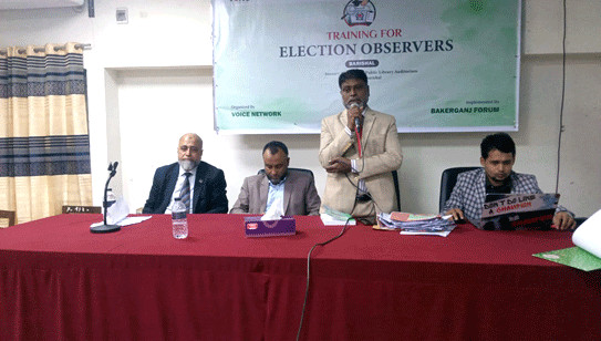 পর্যবেক্ষক সংস্থা বাকেরগঞ্জ ফোরামের নির্বাহী পরিচালক মোঃ শাহ আলম হাওলাদারের সভাপতিত্বে ও মোঃ আনিছুর রহমানের সঞ্চালনায় অতিথি হিসেবে উপস্থিত ছিলেন নির্বাচন বিশেষজ্ঞ ও নির্বাচন সংস্কার কমিশনের সদস্য জনাব ড: আব্দুল আলিম, জনাব মোস্তফা কামাল, নির্বাচন কর্মকর্তা-বরিশাল, জনাব এনায়েত হোসেন জাকারিয়া সিইও-ইমপ্যাক্ট ও চেয়ারম্যান স্টিয়ারিং কমিটি-ভয়েস নেটওয়ার্ক, জনাব বোরহান উদ্দীন- রিচার্স ও এডভোকেসী কোঅর্ডিনেটর ভয়েস নেটওয়ার্ক, এডভোকেট আবুল খায়ের প্রমূখ । দিনব্যাপি প্রশিক্ষণ কর্মশালায় পর্যবেক্ষকদের দায়িত্ব ও কর্তব্য, আরপিও, নির্বাচন পরবর্তী রিপোর্ট প্রস্তুতকরণ বিষয়ে বিষদ আলোচনা করেন অতিথিবৃন্দ ।