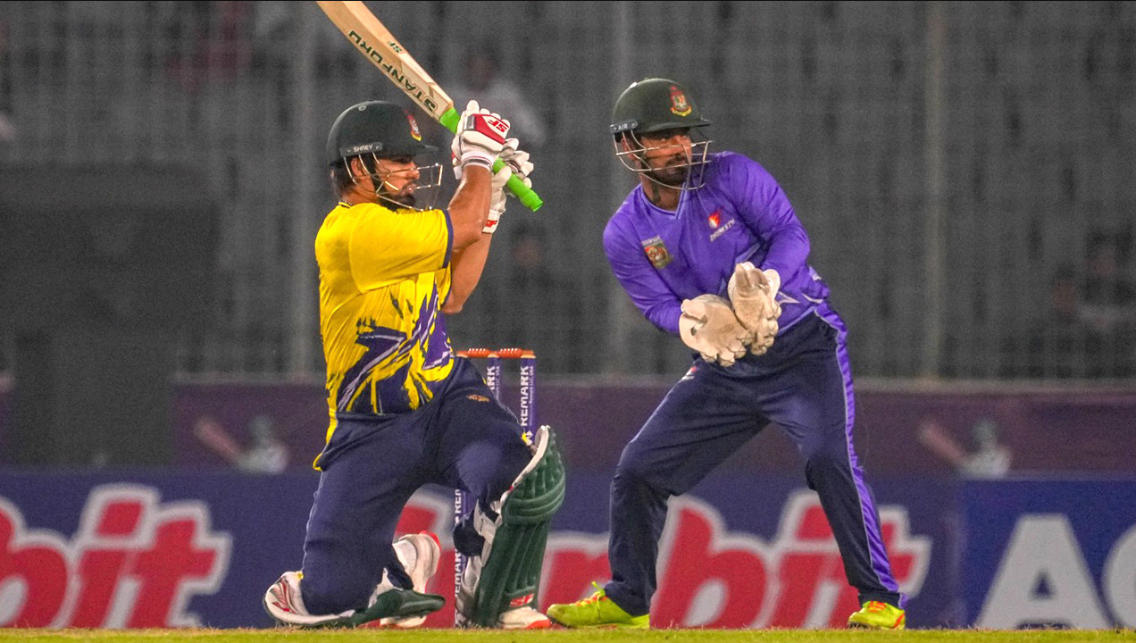 স্পোর্টস ডেস্ক : একের পর এক উইকেট পতনের মধ্যেও ক্রিজের একপ্রান্ত আগলে রেখে দুর্বার একাদশকে নাটকীয় জয় এনে দিলেন নুরুল হাসান সোহান। শেষ দুই ওভারে প্রয়োজন ছিল ৩৩ রান—যা ছিল প্রায় অসম্ভব সমীকরণ। তবে শরিফুল ইসলামের করা ১৯তম ওভারে তিনটি ছক্কা ও একটি চারের সাহায্যে ২৬ রান তুলে ম্যাচের মোড় ঘুরিয়ে দেন সোহান। পরের ওভারের তিন বলেই জয়ের বন্দরে পৌঁছে যায় দুর্বার একাদশ।