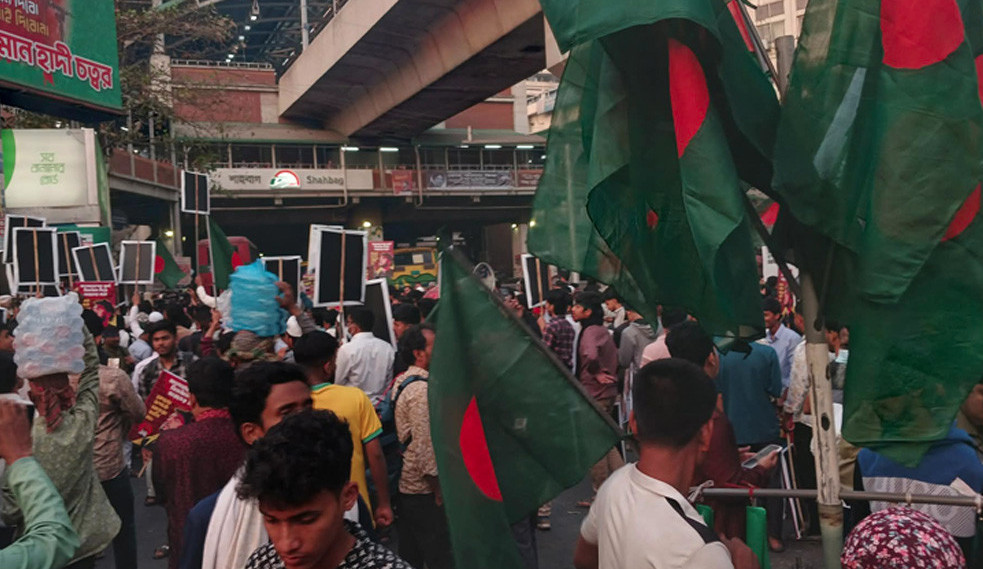 পুলিশি হামলা ও ভারতীয় ষড়যন্ত্রের প্রতিবাদে রাজধানীর শাহবাগ মোড় অবরোধ করেছেন জুলাই ঐক্যের নেতাকর্মীরা।