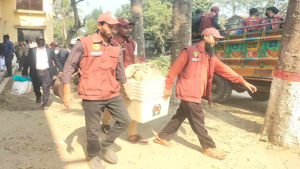 তিনি বলেন, প্রতিটি কেন্দ্রে দায়িত্বপ্রাপ্ত প্রিজাইডিং অফিসার, সহকারী প্রিজাইডিং অফিসার ও পোলিং কর্মকর্তারা নির্ধারিত কেন্দ্রের জন্য ব্যালট বাক্স, ব্যালট পেপার, সিল, স্ট্যাম্প, ভোটার তালিকা ও অন্যান্য নির্বাচন সামগ্রী বুঝে নিয়েছেন। একই সঙ্গে পুলিশ ও আনসার সদস্যদেরও আনুষ্ঠানিকভাবে দায়িত্ব বুঝিয়ে দেওয়া হয়েছে।