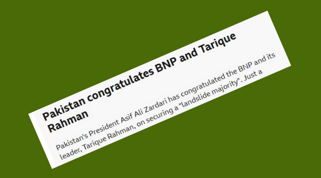 জারদারি আরও আশা প্রকাশ করেন, ঢাকায় নতুন রাজনৈতিক পরিবেশ আঞ্চলিক পর্যায়ে আরও ভারসাম্যপূর্ণ, স্বাধীন ও পারস্পরিক সম্মানভিত্তিক সম্পৃক্ততা নিশ্চিত করতে সহায়ক হবে।গতকাল বৃহস্পতিবার (১২ ফেব্রুয়ারি) সারা দেশে ২৯৯ আসনে অনুষ্ঠিত ত্রয়োদশ জাতীয় সংসদ নির্বাচন ও গণভোটে ধানের শীষের জোয়ার এবং বিএনপির নিরঙ্কুশ বিজয় হয়। সর্বশেষ প্রাপ্ত ফলাফলে বিএনপি জোট ২০৮টি আসনে জয়লাভ করেছে।