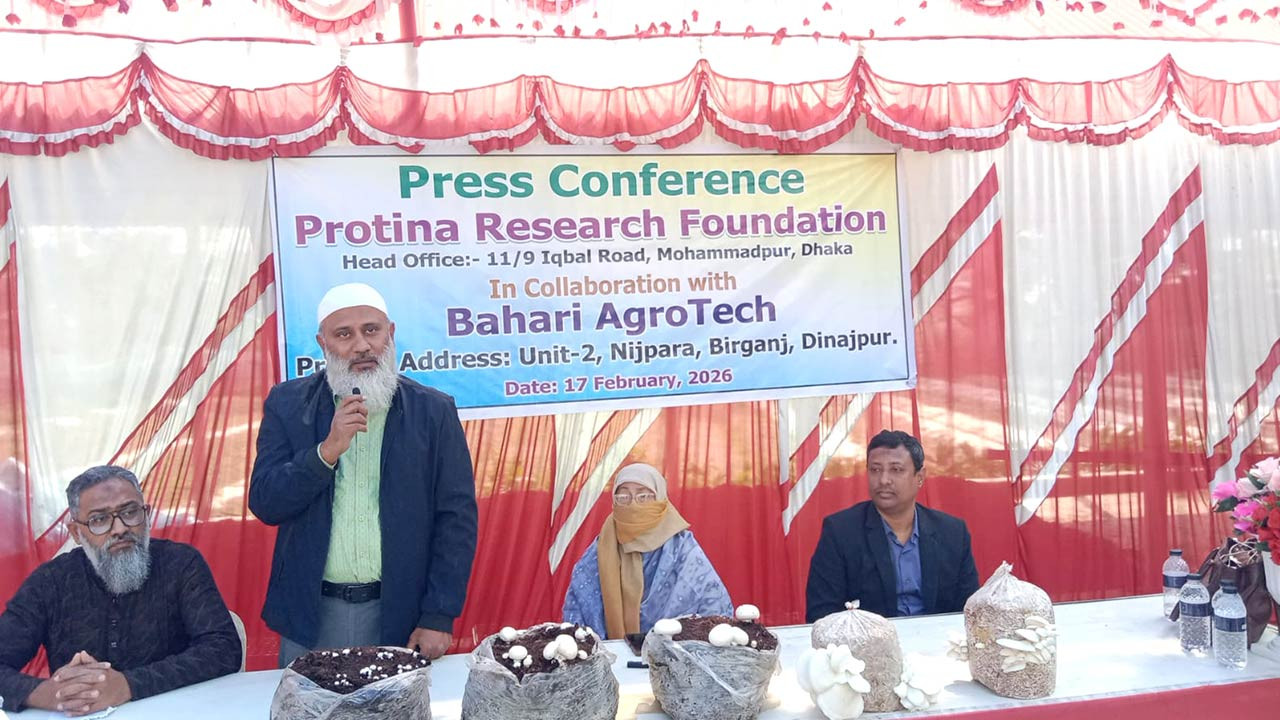 আজ মঙ্গলবার (১৭ ফেব্রুয়ারি) দুপুরে দিনাজপুরের বীরগঞ্জ উপজেলার দক্ষিণ নিজপাড়া গ্রামে নিজস্ব খামারে আয়োজিত এক সংবাদ সম্মেলনে এ তথ্য জানান প্রোটিনা রিসার্চ ফাউন্ডেশনের চেয়ারম্যান মাসুদা ইসলাম। সংবাদ সম্মেলনে বীজ উৎপাদন, কম্পোস্ট সার তৈরি, বাটন মাশরুম চাষ পদ্ধতি ও পুষ্টিগুণ, বাজারের চাহিদা এবং বাজারজাতকরণের বিষয়ে অবহিত করা হয়।