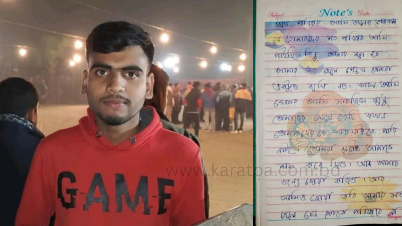চিরকুটে তিনি লেখেন ‘প্রিয় পরিবার। আমি অনেক ভাগ্যবান যে তোমাদের মত পরিবার আমি পাইছি। কিন্তু আমার মনে হয়, আমার মত ছেলে পেয়ে তোমরা একটুও সুখী নও। কারণ আমি বেকার। আমি সারাজীবন শুধু তোমাদের খেয়ে গেছি, কখনো তোমাদেরকে খাওয়াইতে পারি নাই। তোমরা সবাই আমাকে মাফ করে দিও। আর আমার জন্য দোয়া করিও। আর আমিও দোয়া করি, আমার মত ছেলে যেন কোনো পরিবারে না জন্মে।’