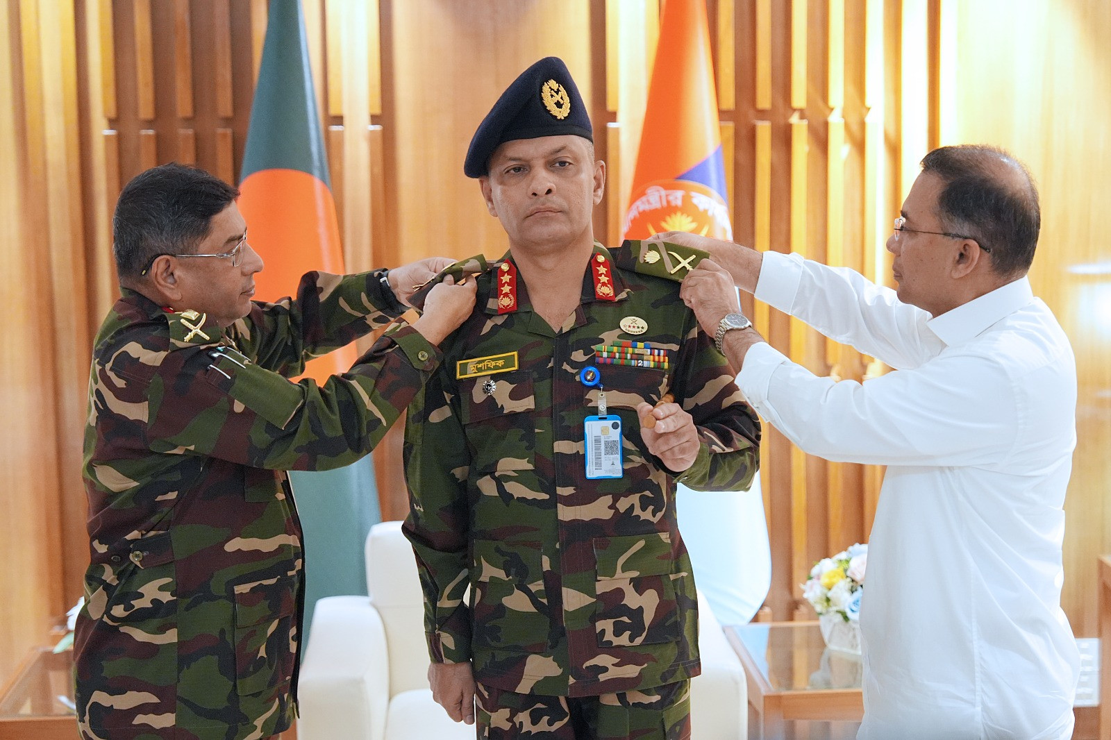 আন্তঃবাহিনী জনসংযোগ পরিদপ্তরের (আইএসপিআর) পাঠানো এক সংবাদ বিজ্ঞপ্তিতে এ তথ্য জানানো হয়েছে। আইএসপিআর জানায়, র্যাংক ব্যাজ পরানোর সময় সেনাবাহিনী প্রধান জেনারেল ওয়াকার-উজ-জামান, নৌবাহিনী প্রধান অ্যাডমিরাল এম নাজমুল হাসান ও বিমানবাহিনী প্রধান এয়ার চিফ মার্শাল হাসান মাহমুদ খাঁন উপস্থিত ছিলেন।