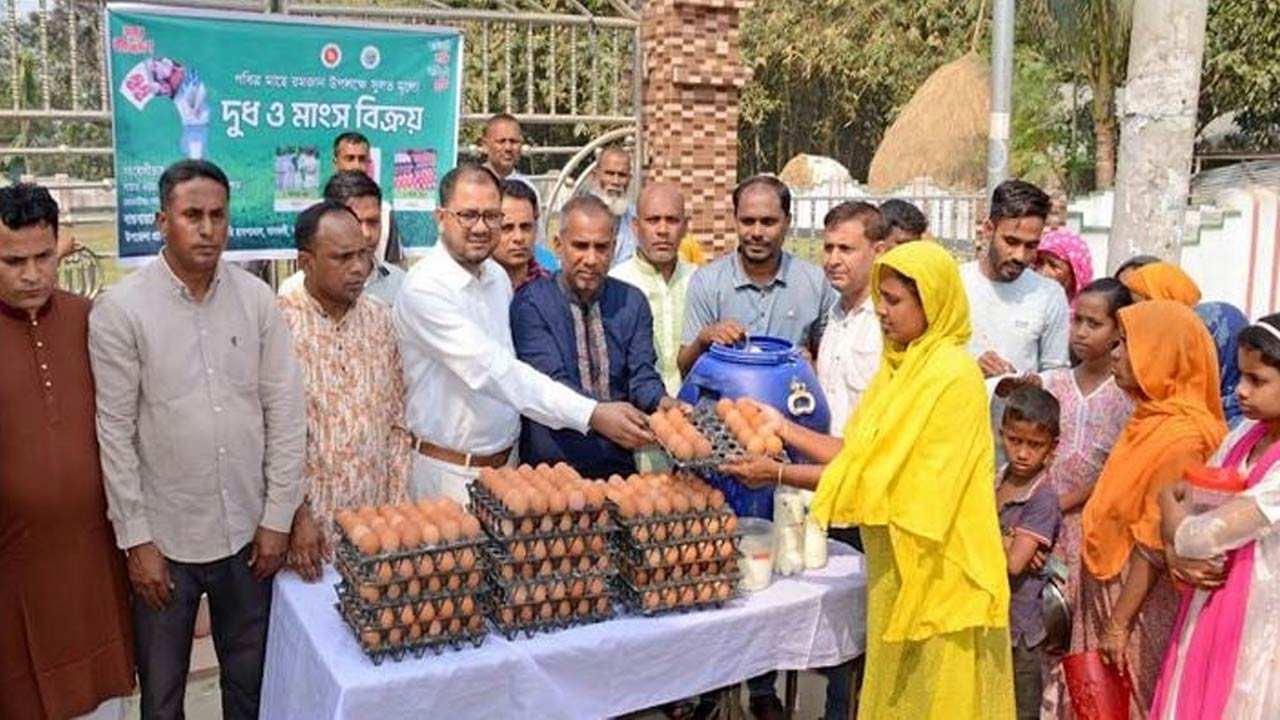 বগুড়ার গাবতলীতে কম মূল্যে দুধ-ডিম ও গরুর মাংস বিক্রি শুরু