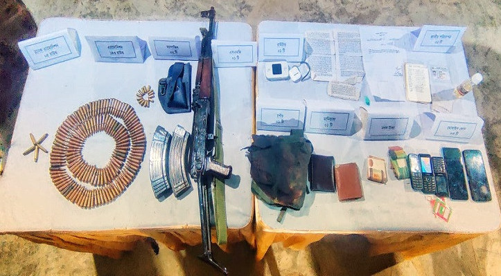 আরও পড়ুনঅভিযান শেষে ঘটনাস্থল থেকে ১টি সাবমেশিনগান, ১৪৩ রাউন্ড এসএমজি অ্যামোনিশন, ১৪ রাউন্ড পিস্তলের অ্যামোনিশন, ৫ রাউন্ড ব্লাঙ্ক অ্যামোনিশন, ২টি অস্ত্রের ম্যাগাজিন এবং অন্যান্য সরঞ্জামাদি উদ্ধার করা হয়।
