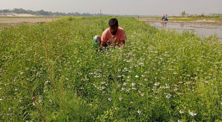বগুড়া সারিয়াকান্দির পতিত জমিতে কালোজিরার বাম্পার ফলন