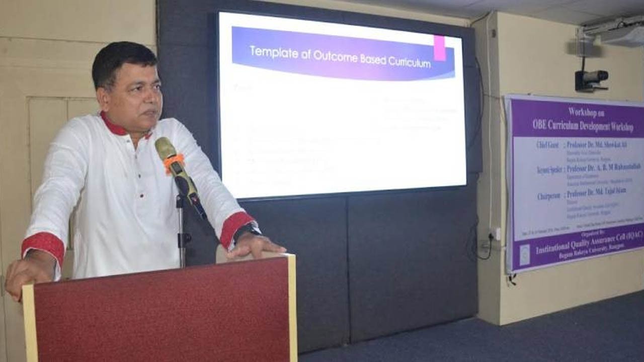 তিনি ওবিই-এর প্রেক্ষাপট, লক্ষ্য-উদ্দেশ্য ও সম্ভাবনা নিয়ে বিস্তারিত উপস্থাপনা করেন এবং কারিকুলাম প্রণয়নে আউটকাম নির্ধারণের কৌশল তুলে ধরেন। কর্মশালায় বেগম রোকেয়া বিশ্ববিদ্যালয়ের বিভিন্ন বিভাগের শিক্ষকবৃন্দ অংশগ্রহণ করেন। এ সময় বেরোবি আইকিউএসি অতিরিক্ত পরিচালক ড. মোঃ আব্দুর রকিব এবং ড. মোঃ সজিব মিয়া উপস্থিত ছিলেন।
