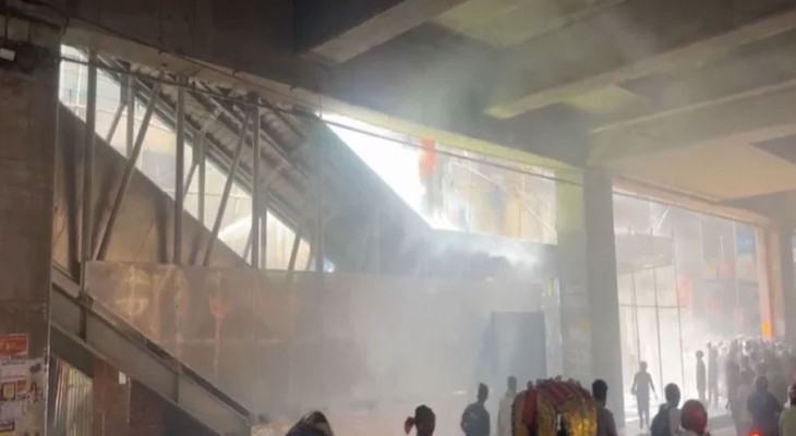 গাজীপুরে বাসের সাথে মোটরসাইকেলের সংঘর্ষে আগুন