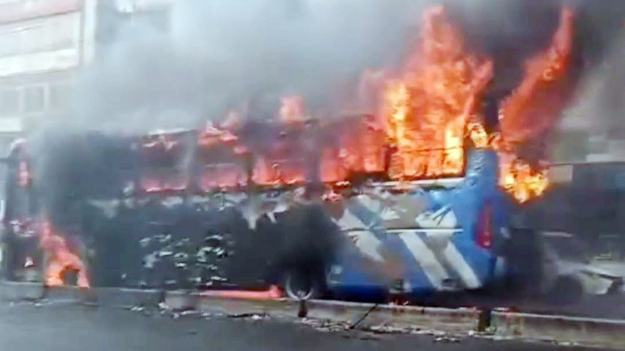 গাজীপুর মহানগরীর বোর্ডবাজার এলাকায় ঢাকা-ময়মনসিংহ মহাসড়কে যাত্রীবাহী বাস ও মোটরসাইকেলের মুখোমুখি সংঘর্ষের পর বাসে অগ্নিকাণ্ডের ঘটনা ঘটেছে।