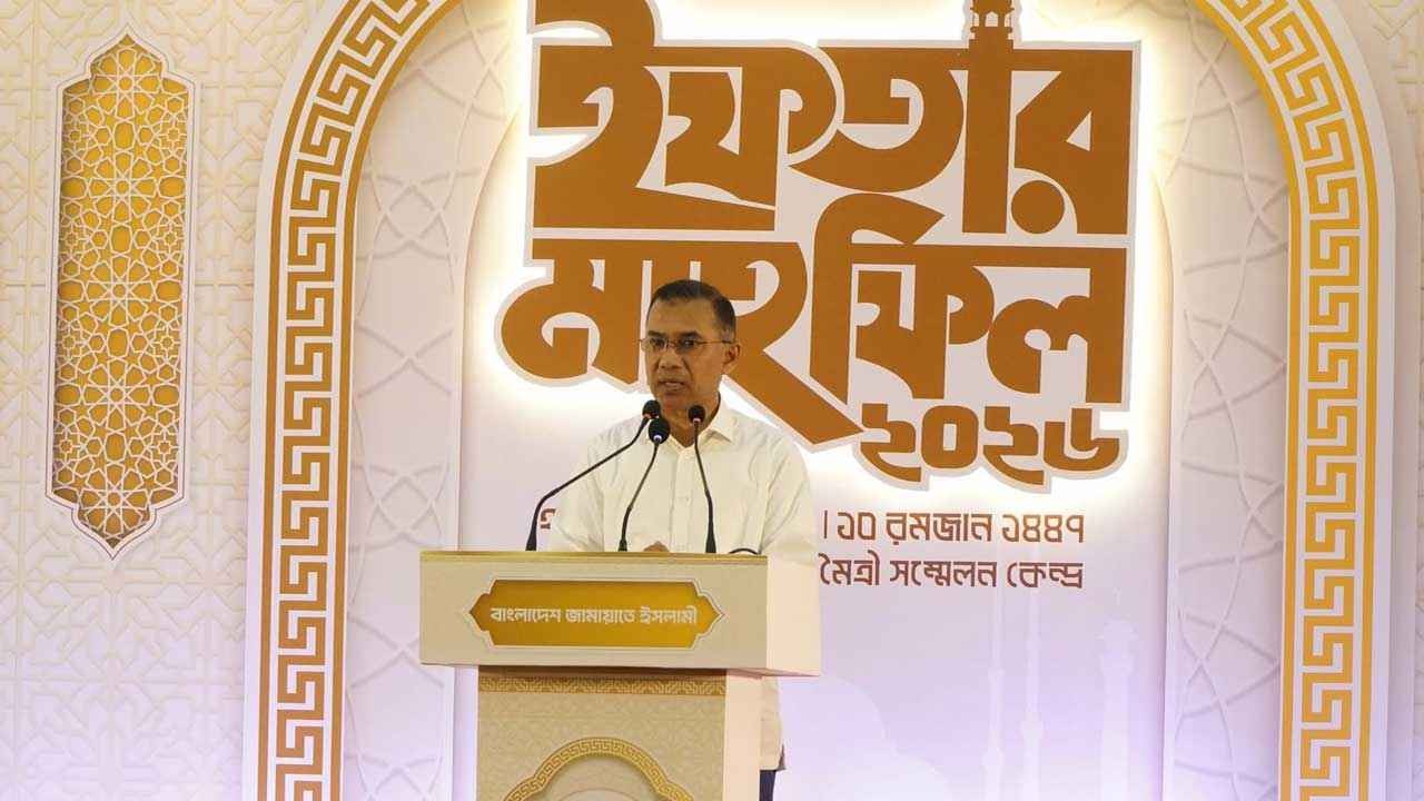 সংসদের প্রধান বিরোধী দল জামায়াতে ইসলামী আয়োজিত ইফতার মাহফিলে যোগ দিয়েছেন প্রধানমন্ত্রী তারেক রহমান। সেখানে দেওয়া সংক্ষিপ্ত বক্তব্যে সবাইকে ঐক্যবদ্ধভাবে দেশের মানুষের ভাগ্য পরিবর্তনে কাজ করার আহ্বান জানিয়েছেন তিনি।