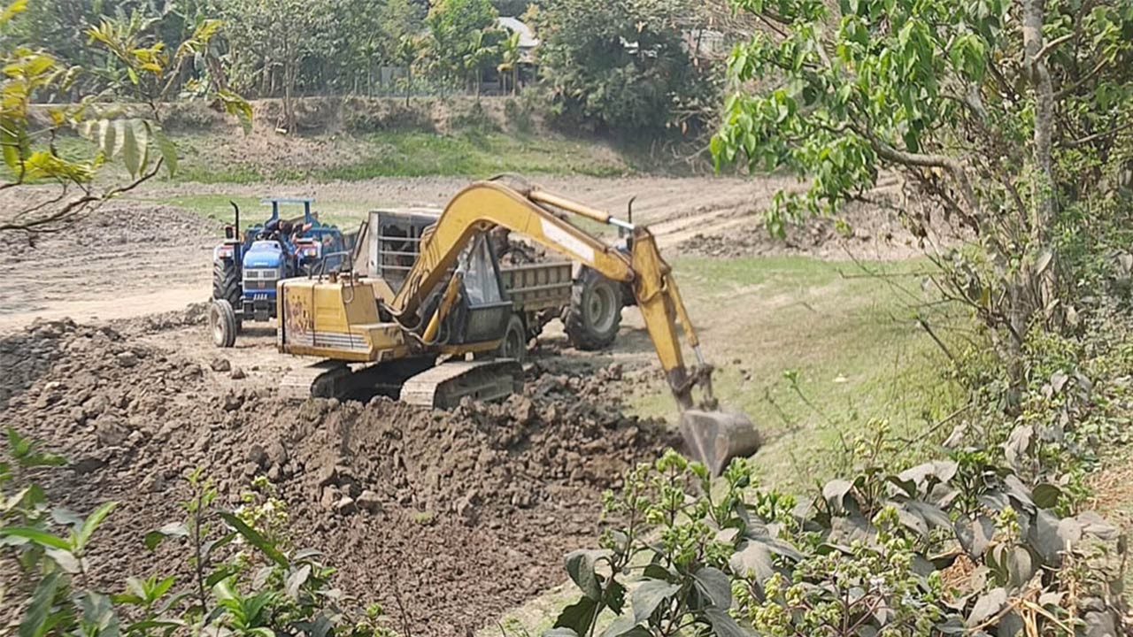 বগুড়ার ধুনটে পুকুর খননের নামে অবৈধভাবে মাটি বাণিজ্য, ঝুঁকিতে পাকাসড়ক!