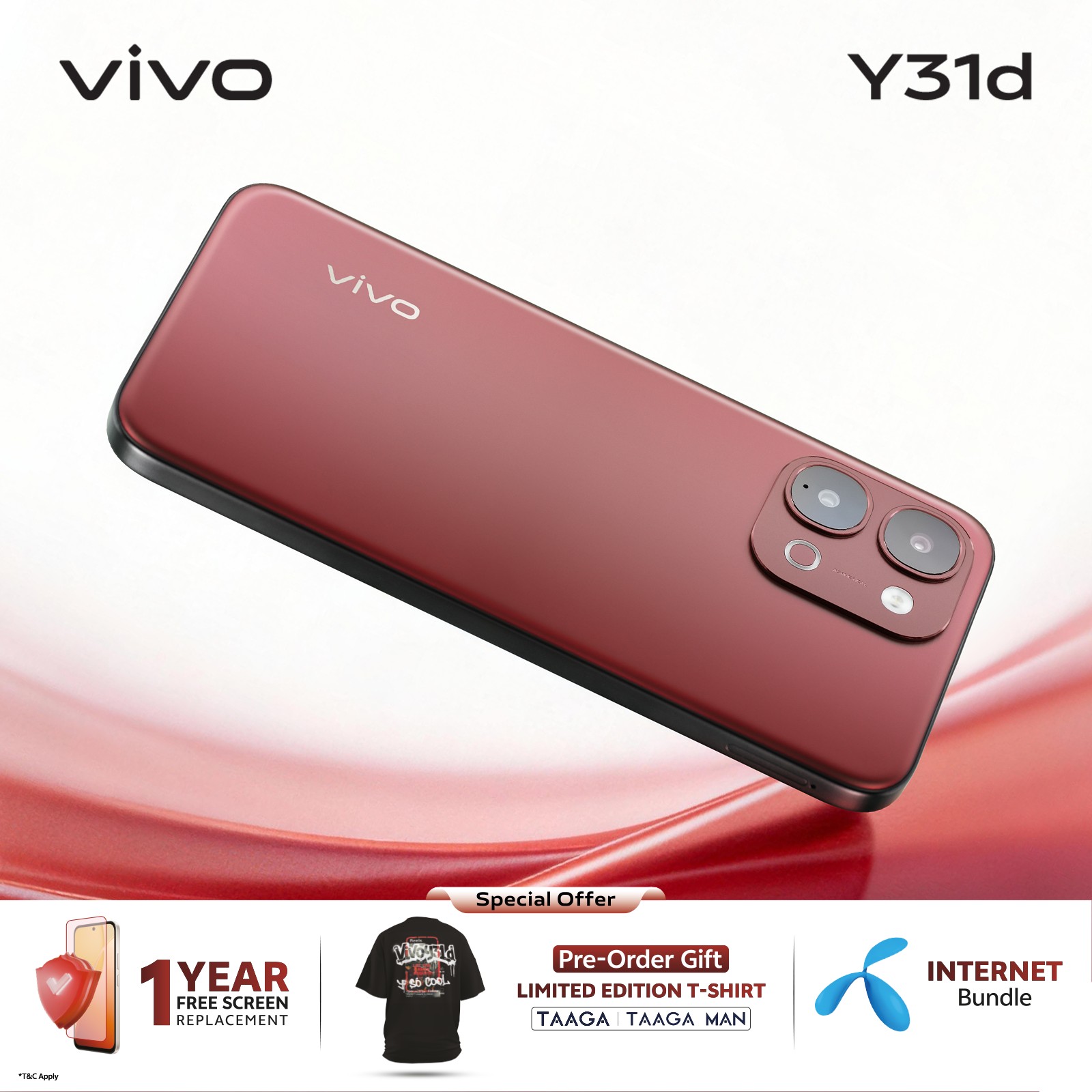 উপলক্ষে ভিভো ও তাগা/তাগা ম্যান-এর বিশেষ পার্টনারশিপে উপহার হিসেবে থাকছে লিমিটেড এডিশন তাগা ম্যান টি-শার্ট (শর্তসাপেক্ষ)।