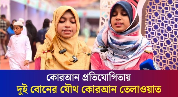 ঢাকায় ছাত্রদল আয়োজিত কোরআন তেলাওয়াত প্রতিযোগিতায় দুই বোনের যৌথ কোরআন তেলাওয়াত