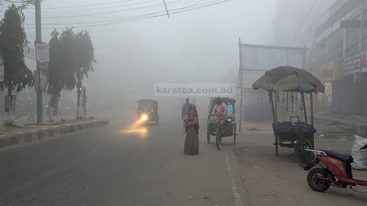 ফাল্গুনের ভোরে বগুড়াসহ উত্তর জনপদে হঠাৎ মাঘের ঘন কুয়াশা