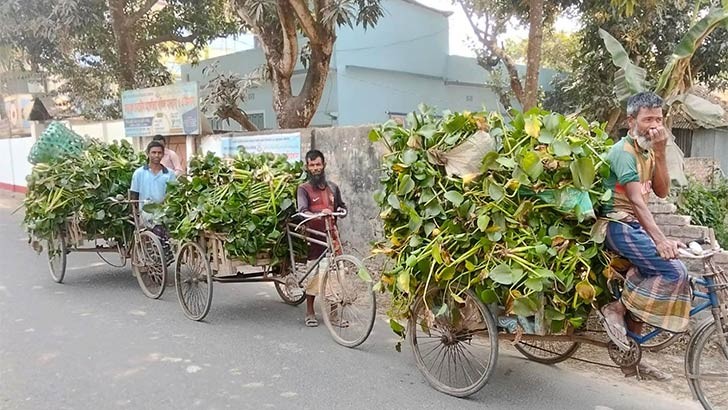 বগুড়ার সোনাতলায় গো-খাদ্য হিসেবে কদর বেড়েছে কচুরিপানার