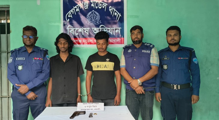 বেগমগঞ্জে বিদেশি পিস্তল ও গুলিসহ দুই যুবক গ্রেপ্তার