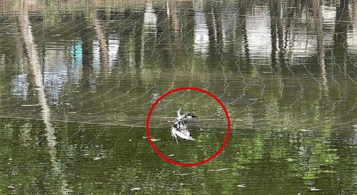 বগুড়ার ধুনটে পুকুরে মাছ রক্ষার জন্য টাঙানো জালে বিপন্ন পাখি