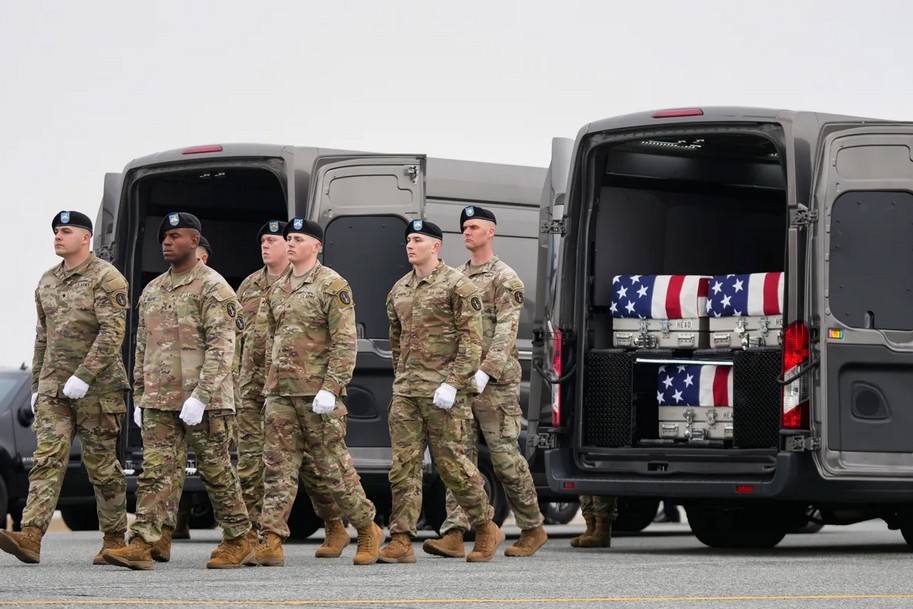 গত শনিবার (৭ মার্চ) ডেলাওয়ার অঙ্গরাজ্যের ডোভার বিমান ঘাঁটিতে এসব লাশ তাদের পরিবারের কাছে হস্তান্তর করা হয়। এ সময় প্রেসিডেন্ট ডনাল্ড ট্রাম্প সেখানে উপস্থিত ছিলেন। হস্তান্তর অনুষ্ঠানে অংশ নিয়ে ট্রাম্প বলেন, ‘এটা খুবই দুঃখজনক দিন। আমি খুশি আমরা তাদের প্রতি শ্রদ্ধা জানিয়েছি। এটা কঠিন। এটা সত্যিই কঠিন পরিস্থিতি।’