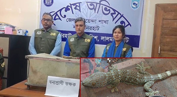 লালমনিরহাটে পুলিশের অভিযানে বিলুপ্তপ্রায় বন্যপ্রাণী তিনটি তক্ষক উদ্ধার