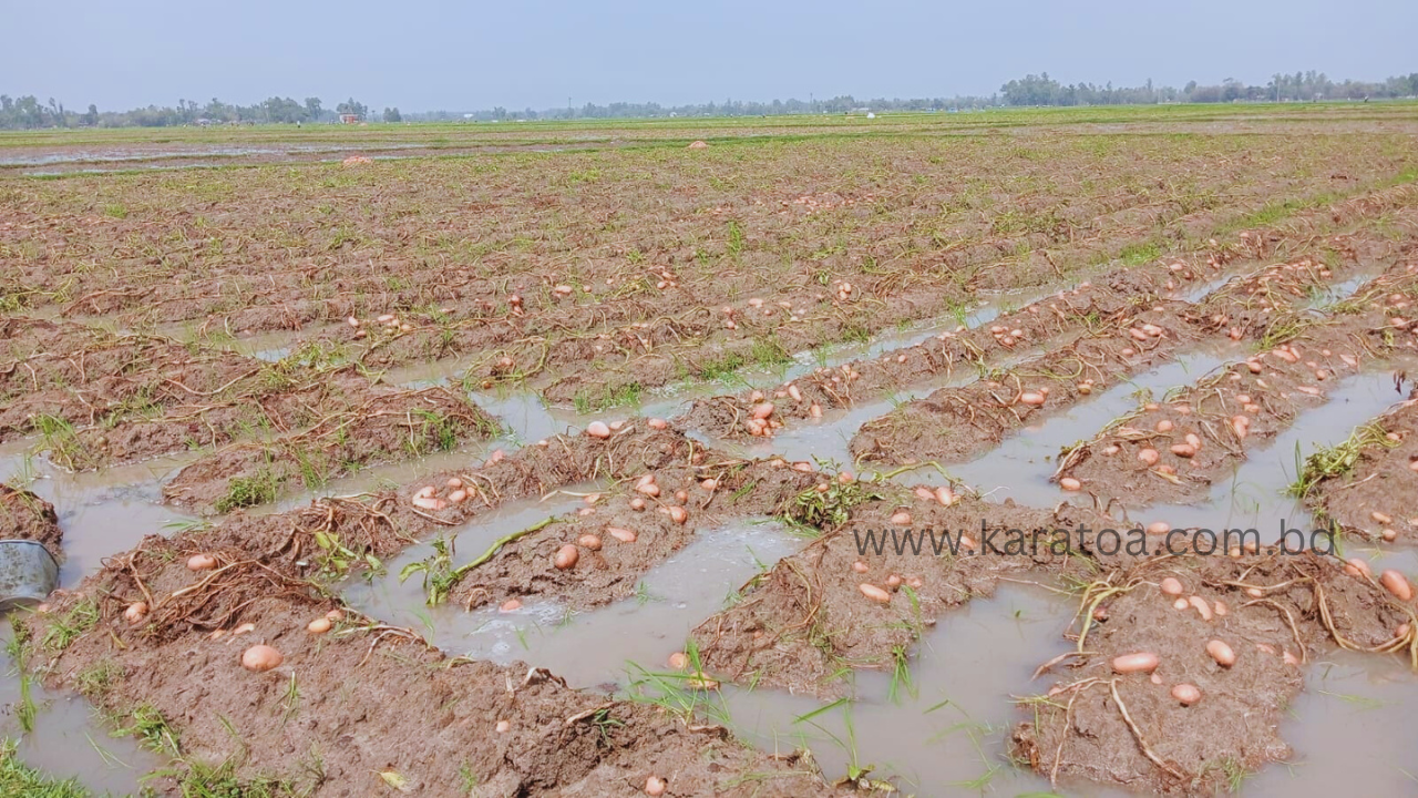 আরও পড়ুনএকই গ্রামের আরিফুল ইসলাম বলেন, গত বছর আলুর আবাদ করে দাম পাইনি। লোকসান পুষে নিতে এবারও আলুর আবাদ করেছি। বাজারে দাম কম, বিক্রি করলে গত বছরের চেয়ে আরও বেশি লোকসান গুণতে হবে। তাই হিমাগারে রাখার জন্য আলুগুলো মাঠেই রেখেছি। রোজার দিন, আগামী ২/১ দিনের মধ্যে আলুগুলো ওঠাইতাম, কিন্তু তা আর হলো না। সকালে বৃষ্টির পানিতে সব ফসল তলে গেছে।’