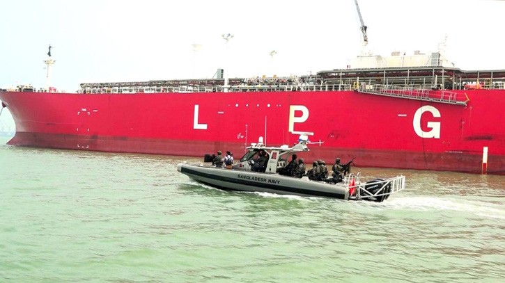 বিজ্ঞপ্তিতে উল্লেখ করা হয়েছে, বাংলাদেশ নৌবাহিনী দেশের সমুদ্রসীমা, গুরুত্বপূর্ণ অবকাঠামো এবং অর্থনৈতিক স্বার্থ রক্ষায় সর্বদা সতর্ক ও পেশাদারিত্বের সঙ্গে দায়িত্ব পালন করে যাচ্ছে। দেশের জ্বালানি নিরাপত্তা নিশ্চিতকরণ এবং সমুদ্রপথে নির্বিঘ্ন বাণিজ্যিক কার্যক্রম বজায় রাখতে নৌবাহিনীর এ ধরনের নিরাপত্তা ব্যবস্থা ভবিষ্যতেও অব্যাহত থাকবে।
