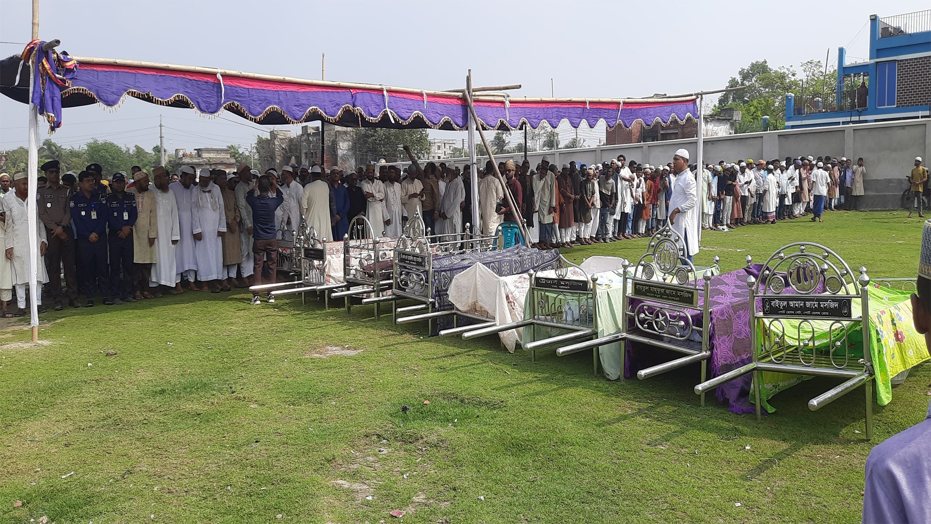 মোংলা উপজেলা মাঠ। সারি সারি রাখা ৯টি খাটিয়া। খাটিয়ার মধ্যে কফিনবন্দি বিএনপি নেতা আব্দুর রাজ্জাক, তার দুই ছেলে সাব্বির ও আব্দুল্লাহ, এক মেয়ে ঐশী, ৪ নাতনি আরফা, ইরান, ফাহিম, আলিফ ও পুত্রবধূ পুতুলের মরদেহ। জানাজা শেষে পাশাপাশি দাফন করা হয় তাদের। বাড়ির অভিভাবক আব্দুর রাজ্জাক যেন সবাইকে নিয়ে একসঙ্গে ঘুমালেন!