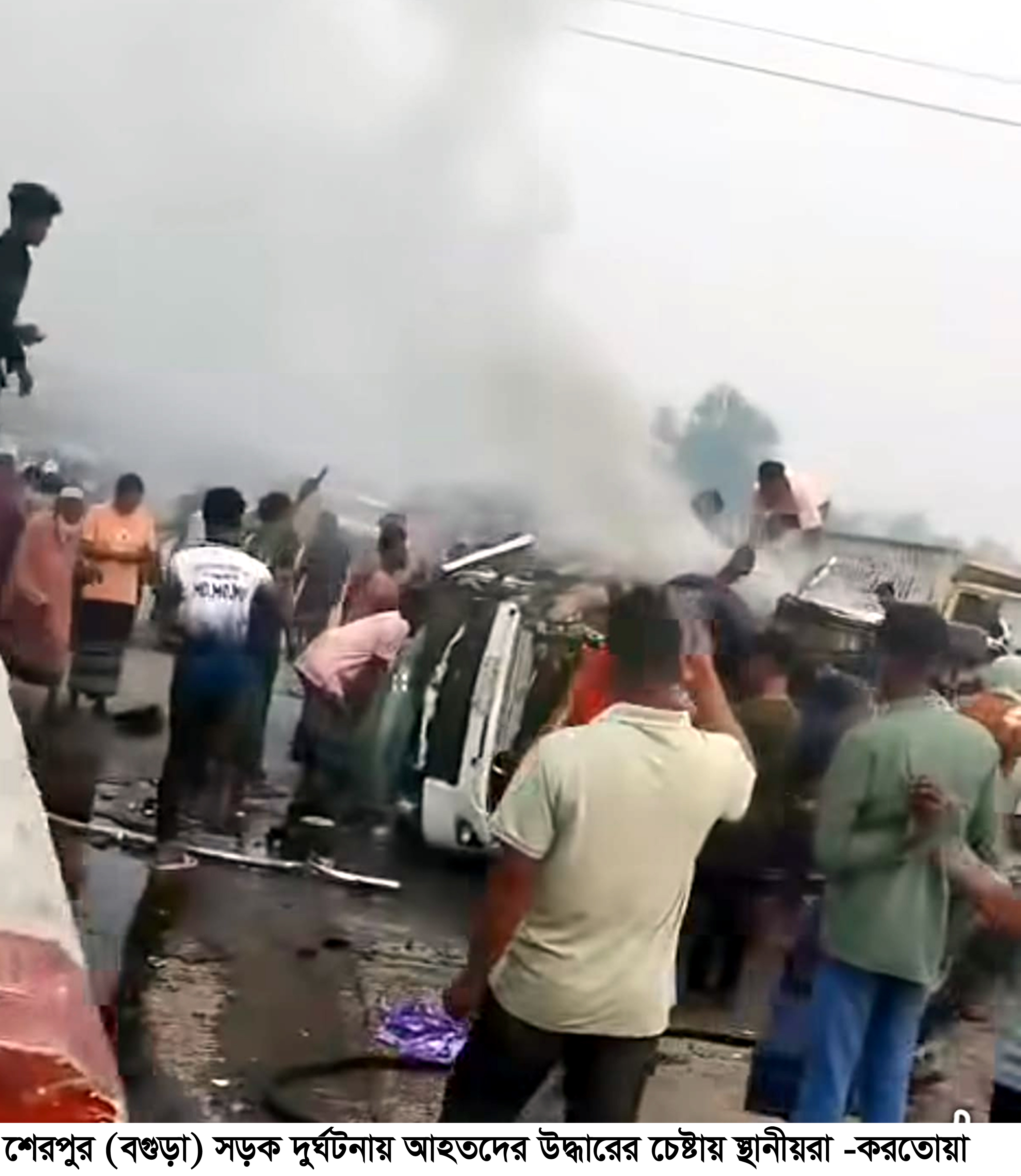 বগুড়ার শেরপুরে সড়ক দূর্ঘটনায় নারী শিশুসহ নিহত ৩, আহত ৯