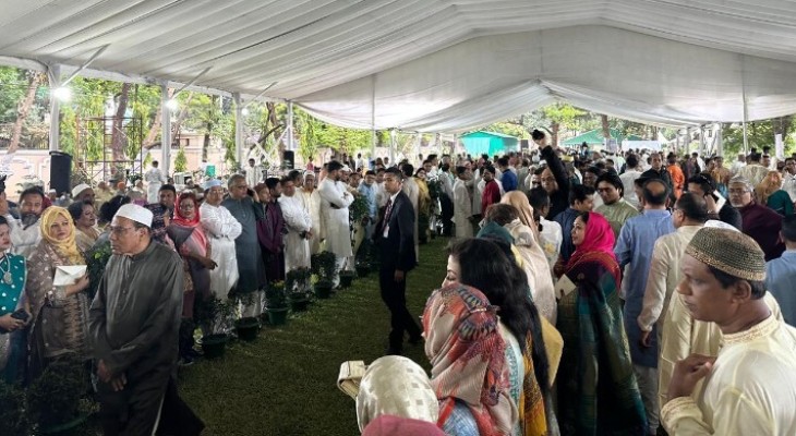 নামাজ শেষে খুতবা পাঠ করা হয় এবং দেশ, জাতি ও সমগ্র মুসলিম উম্মাহর শান্তি, সুখ-সমৃদ্ধি কামনায় বিশেষ মোনাজাত অনুষ্ঠিত হয়। মোনাজাত পরিচালনা করেন জাতীয় সংসদ সচিবালয়ের সিনিয়র ইমাম মুহাম্মদ ছাইফুল্লাহ।