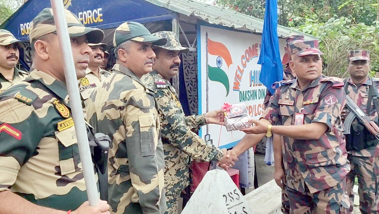 ঈদ উপলক্ষে হিলি সীমান্তে বিজিবি-বিএসএফের মিষ্টি বিনিময়