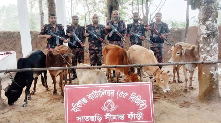 সীমান্তে নিরাপত্তা রক্ষা চোরাচালান ও মাদকদ্রব্য পাচার প্রতিরোধে নিয়মিতভাবে কঠোর অভিযানের অংশ হিসেবে এই গরুগুলো জব্দ করা হয়।