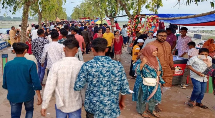 অন্যদিকে মহাস্থান জাহাজঘাট এলাকায় সকাল থেকেই দর্শনার্থীদের ভিড়। ছোট-বড় মানুষের যেন মিলন মেলা। একে অপরের হাত ধরে ছবি তুলছেন। কখনও শুয়ে থেকে, কখনও বসে। চলবে সন্ধ্যার আগ পর্যন্ত।