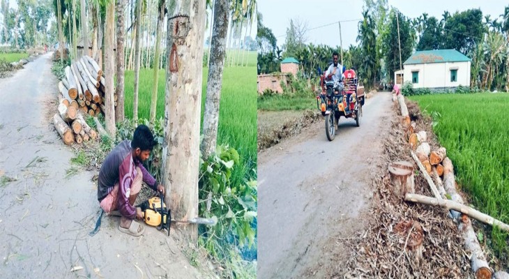 বগুড়ার সোনাতলায় রাস্তার গাছ অবাধে কাটা হচ্ছে : স্থানীয়দের মাঝে ক্ষোভ