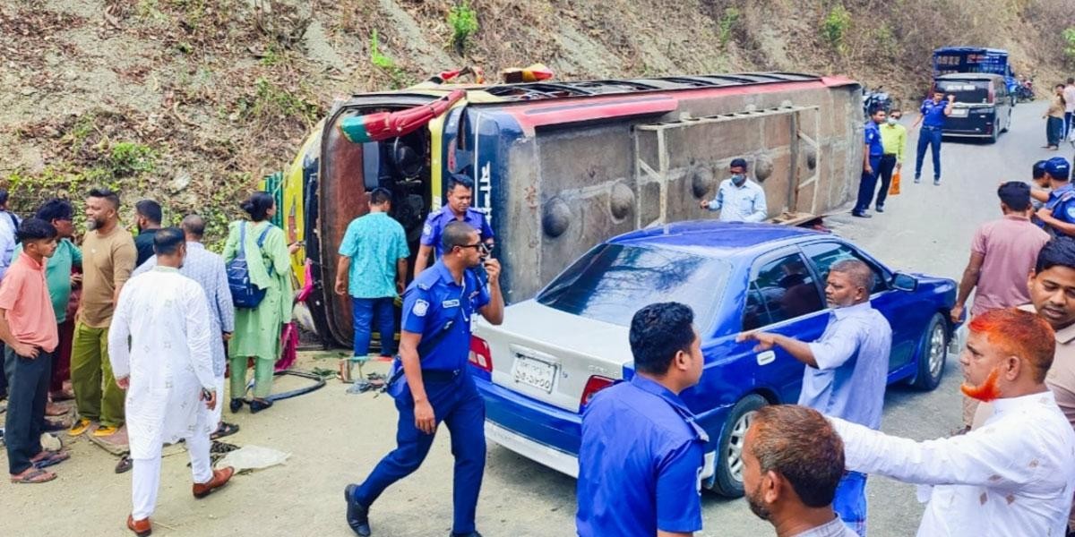 রাঙামাটিতে বাস উল্টে আহত ২০, হাসপাতালে ভর্তি ১০