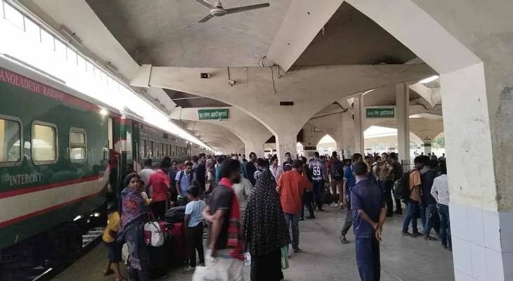 ঢাকামুখী যাত্রীদের কমলাপুরে ভিড়