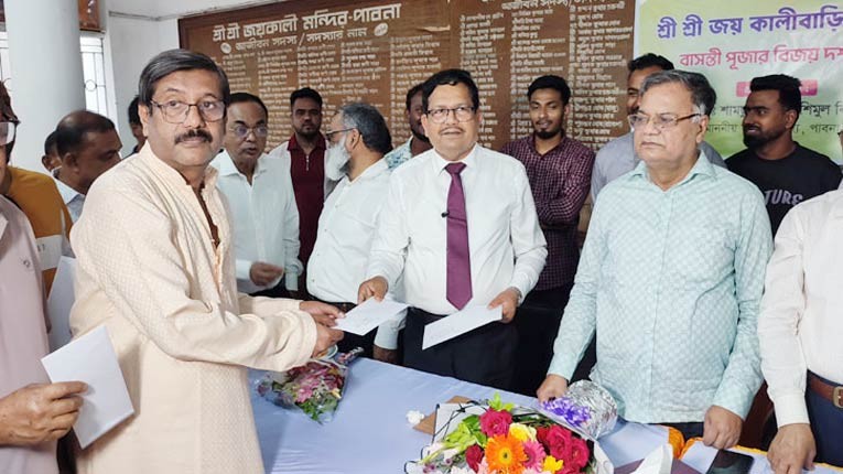 আরও পড়ুনপাবনা জেলা পূজা উদযাপন ফ্রন্টের সভাপতি এড. মলয় কুমার দাসের সভাপতিত্বে অনুষ্ঠানে অন্যান্যের মধ্যে পাবনা প্রেস ক্লাবের সাবেক সভাপতি অধ্যাপক শিবজিত নাগ, সভাপতি আখতারুজ্জামান আখতার, বাংলাদেশ পেট্রোল পাম্প মালিক সমিতির মহাসচিব আবুল হোসেন খান রেয়ন, জেলা যুবদলের আহ্বায়ক হিমেল রানা, জেলা স্বেচ্ছাসেবক দলের সাবেক সাধারণ সম্পাদক মাসুদ রানা, দৈনিক ইছামতির বার্তা সম্পাদক আঁখিনুর ইসলাম রেমন, পাবনা জেলা পূজা উদযাপন ফ্রন্টের সাধারণ সম্পাদক দীপঙ্কর সরকার জিতু, প্রচার সম্পাদক সাগর মজুমদার, জ্যোতির্ময় মজুমদার গৌরাঙ্গ, অচিন্ত ঘোষ, রবিউল ইসলাম রবি, গোলাম রব্বানী কামনা প্রমুখ উপস্থিত ছিলেন।