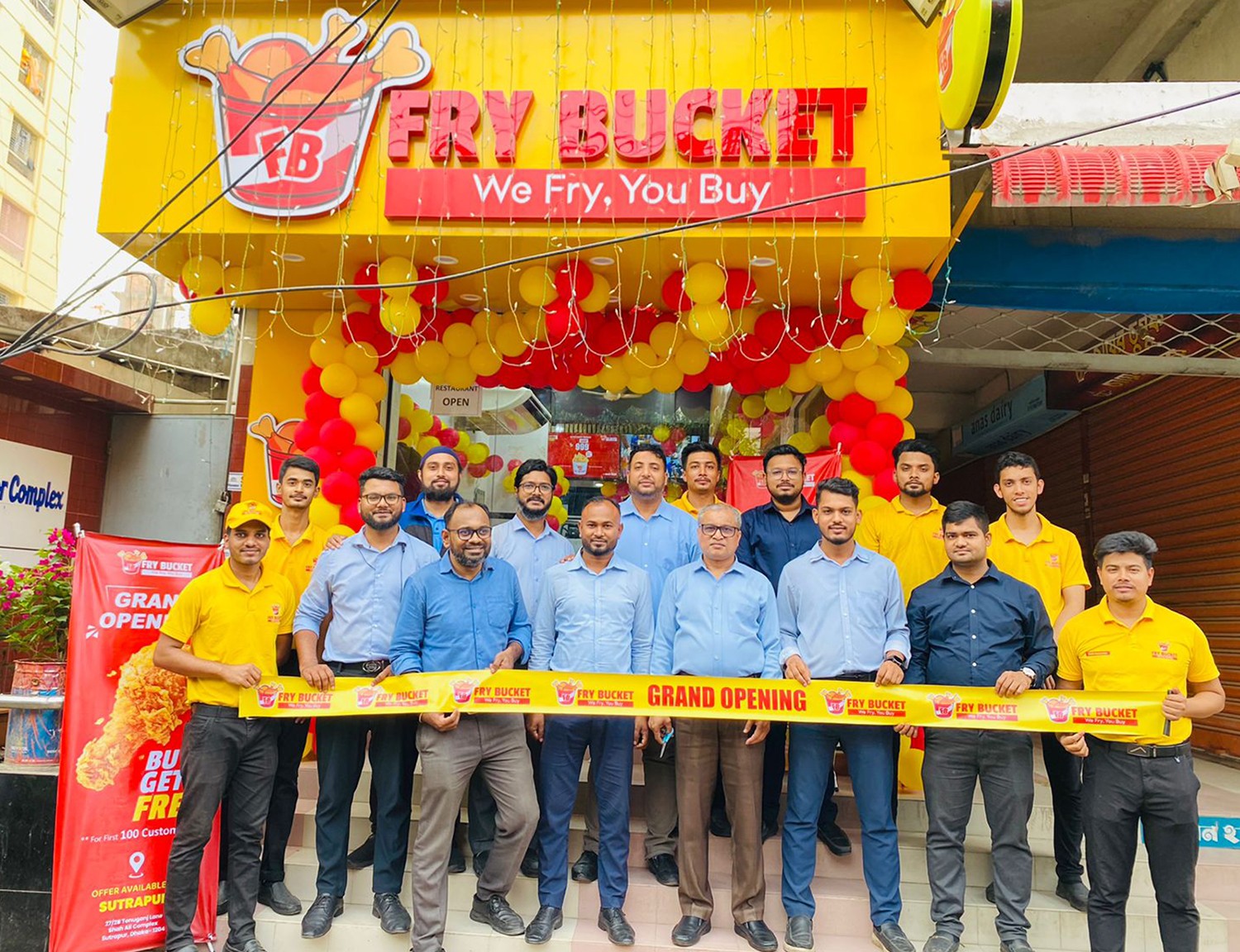 উদ্বোধনী অনুষ্ঠানে ফ্রাই বাকেট-এর জেনারেল ম্যানেজার (অপারেশন) মোহাম্মদ আনোয়ার হোসেন, হেড অব মার্কেটিং মো. সামি-উর-রহমান, ম্যানেজার (অপারেশন) আরিফুল ইসলামসহ স্থানীয় গণ্যমান্য ব্যক্তিবর্গ উপস্থিত ছিলেন।